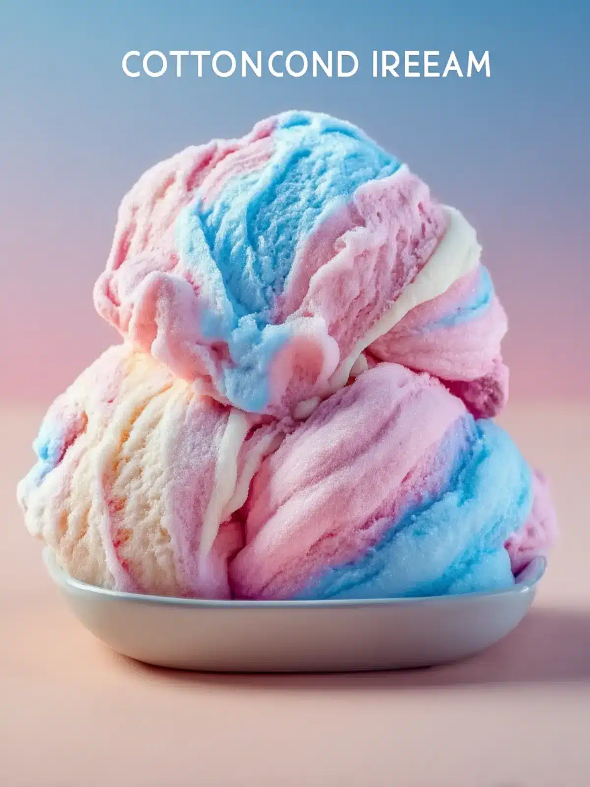 A deliciously sweet and colorful cotton candy ice cream with a fun swirl effect.