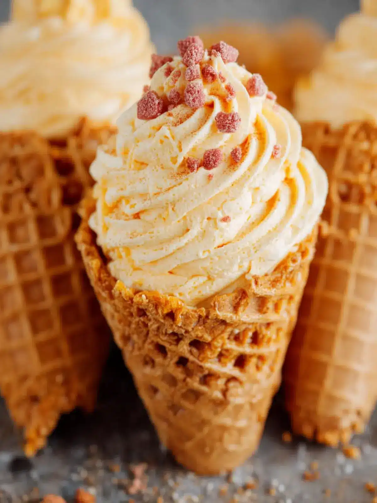 Chocolate Pumpkin Cheesecake: For chocolate lovers, blend in cocoa powder with the cheesecake mixture for a rich, chocolatey experience. Layering it in the cones offers a gorgeous visual contrast.