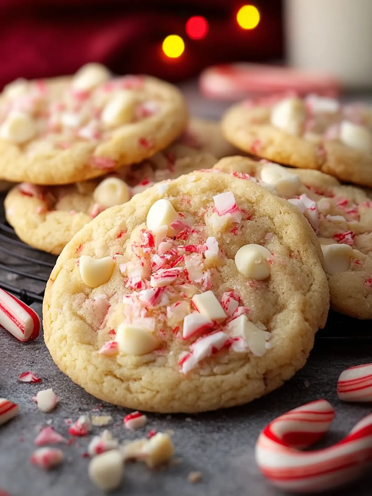 Delicious white chocolate peppermint cookies that are soft and chewy, perfect for the holidays.