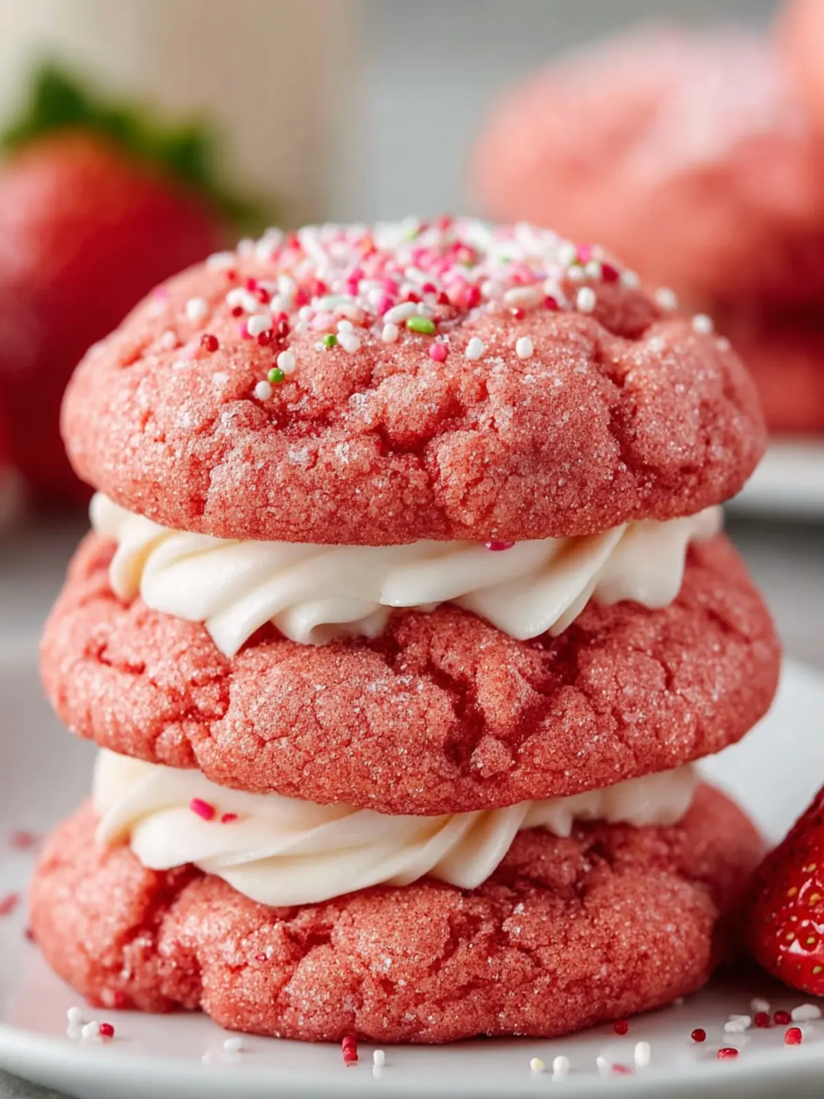 Take your cookies to the next level by adding frosting or glaze. A simple buttercream or cream cheese frosting can be piped on top for added sweetness. For a lighter touch, a drizzle of lemon icing blends beautifully with the strawberry flavor.