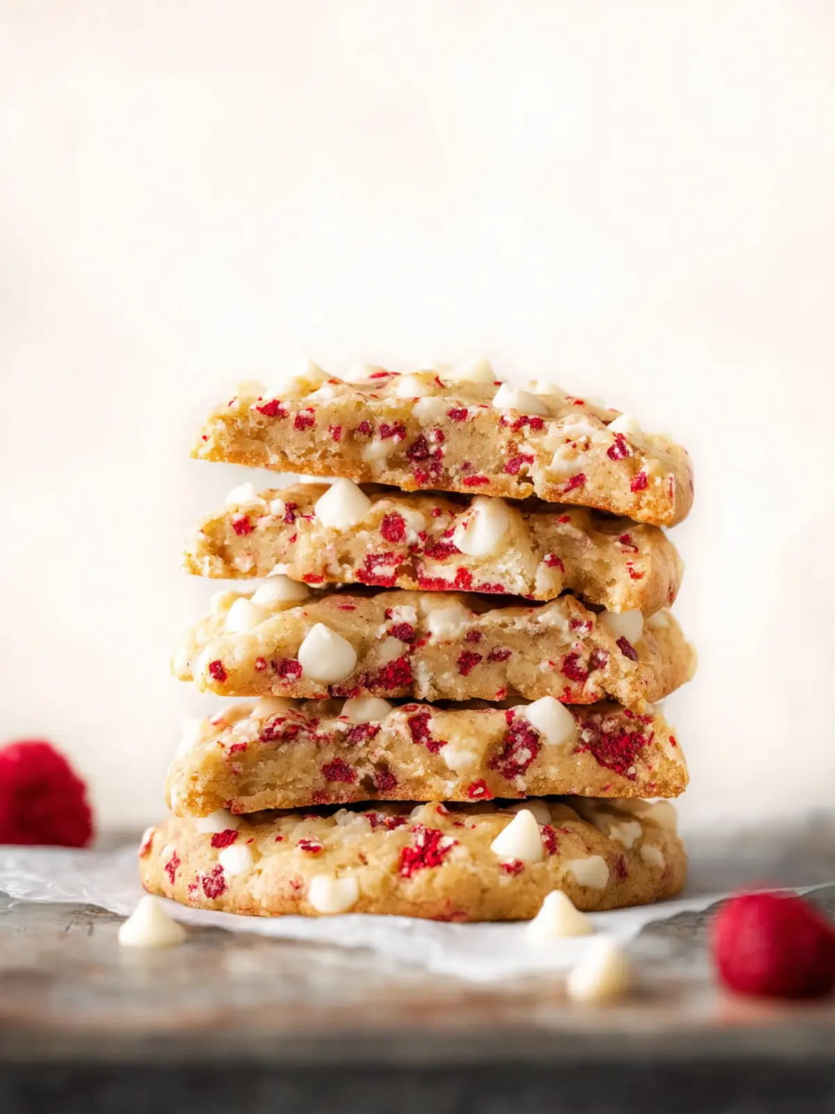 Delicious cookies loaded with white chocolate and freeze-dried raspberries.
